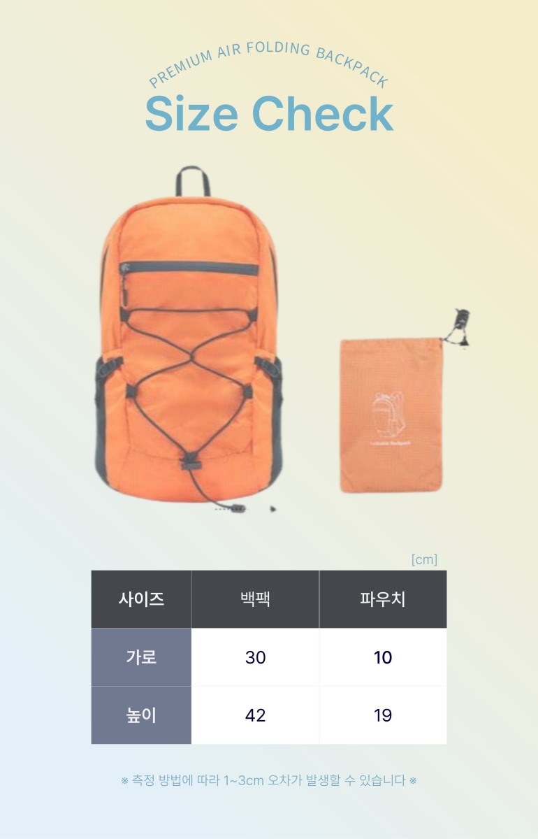 °¡¹æ(°¡·Î 30cm X ³ôÀÌ 42cm) + ÆÄ¿ìÄ¡ (°¡·Î 10cm X ³ôÀÌ 19cm) |