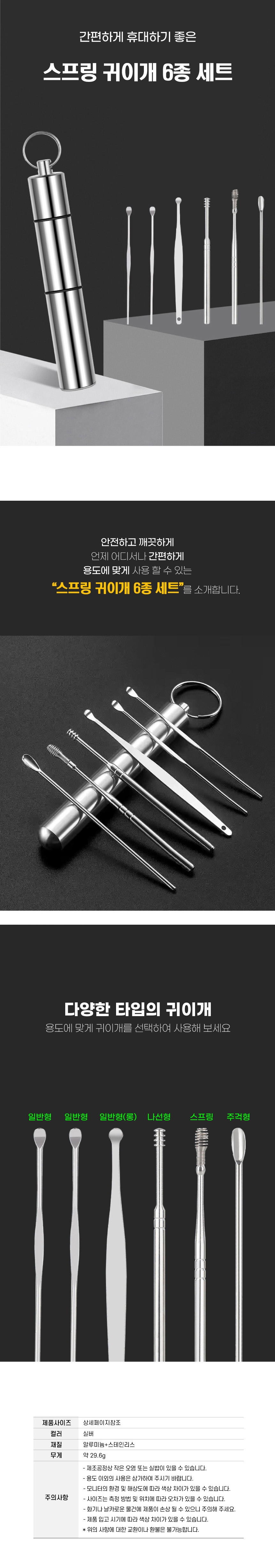 ÈÞ´ë¿ë ½ºÇÁ¸µ ±ÍÀ̰³ ŰÇÎ 6Á¾ ¼¼Æ® ÈÞ´ë¿ë ½ºÅÙ ±ÍÀ̰³ ¿©Çà¿ë