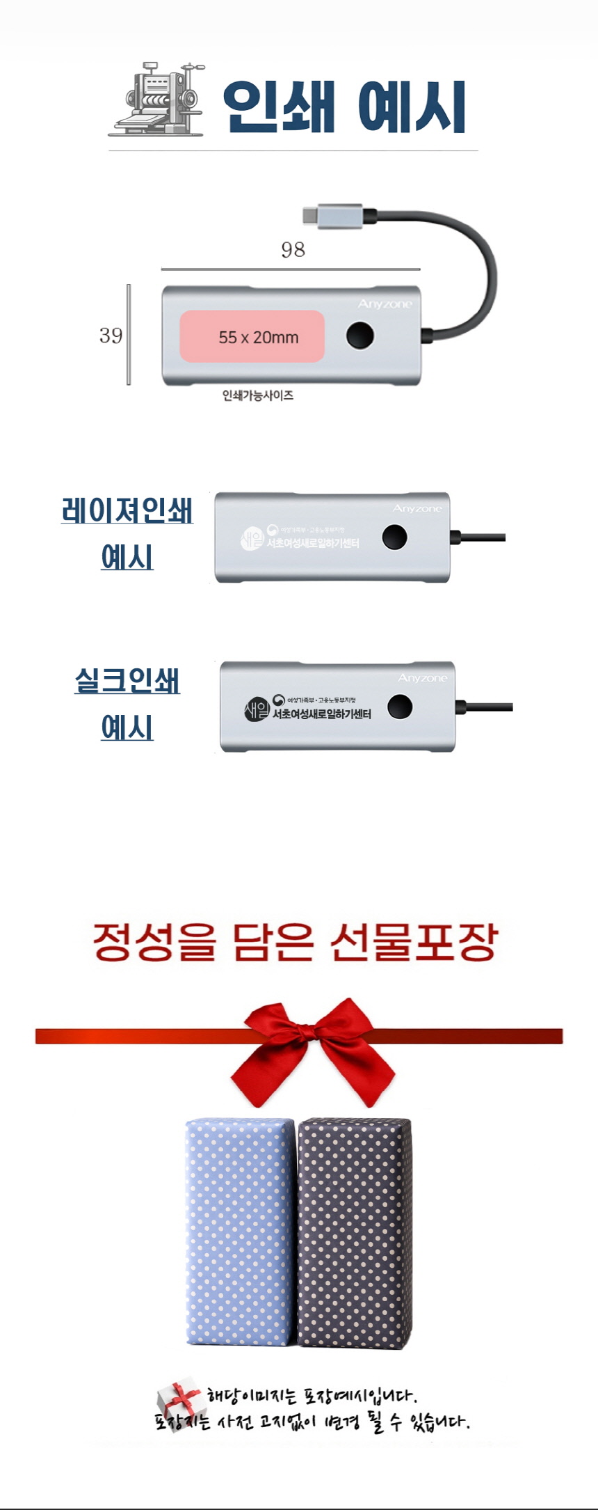 • ÆÐŰÁö, ¼±¹° »óÀÚ µî ¿É¼ÇÀ» Ãß°¡ÇÏ¿© ¹è¼Û ÈÄ ¹ÝǰµÈ »óǰÀÇ ¼±¹°»óÀÚ°¡ ÈѼյǾú°Å³ª µ¿ºÀÇÏÁö ¾ÊÀº °æ¿ì, ÇØ´ç ºñ¿ë °øÁ¦ ÈÄ È¯±ÞµÉ ¼ö ÀÖ½À´Ï´Ù.