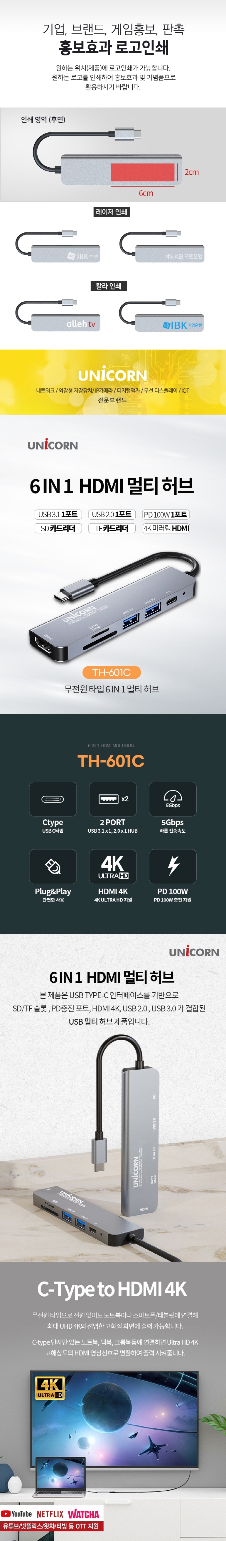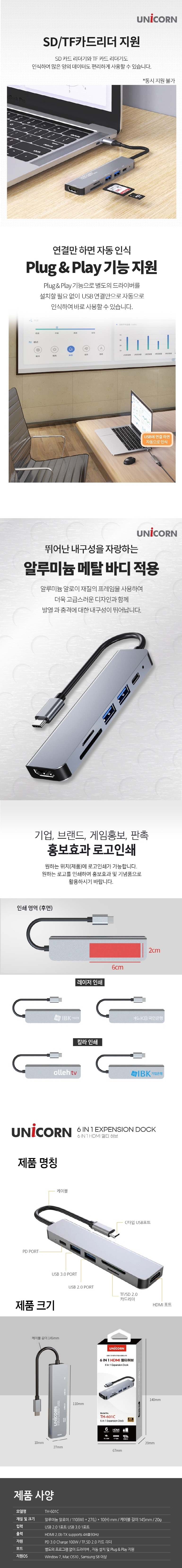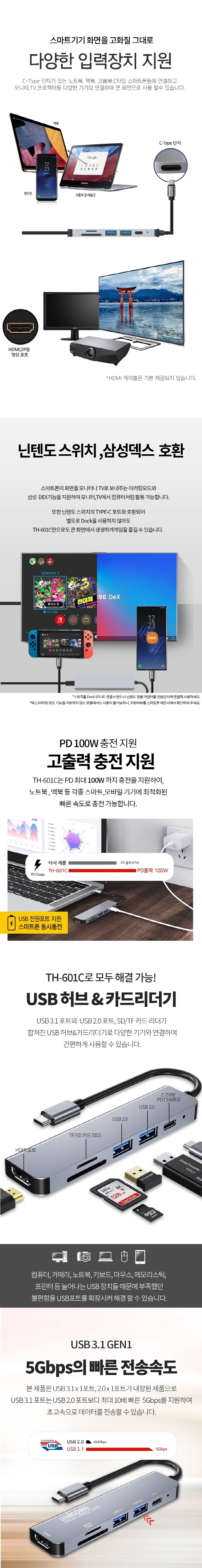 À¯´ÏÄÜ CŸÀÔ 6in1 HDMI ¹Ì·¯¸µ ¸ÖƼÇãºê PD100W ÃæÀü TH-601C